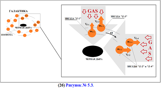 Но огромное количество другой информации о черной дыре, не было учтено. И главный факт опровергающий наличие огромного гравитационного поля у черной дыры, это факт расширения галактик. То есть, движение звезд в галактике, направленное на удаление от центра галактики и от ее черной дыры, является прямым доказательством отсутствия огромного гравитационного поля у черной дыры рис.№ 5.3.