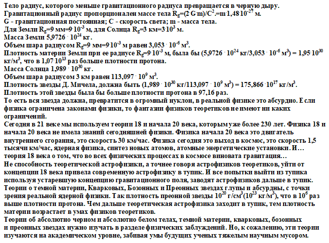Рассмотрим гипотезы Джона Мичелла и других приверженцев теорий о высоких плотностях материи.