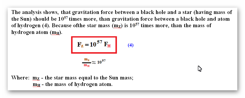 Really, in galaxies, stars with a large mass and with strong gravitation move away from a black hole and from the center of the galaxy, and hydrogen atoms, with 1057 times less gravitation force, move to the center of the galaxy, to a black hole (fig. №5.4.)