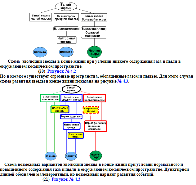 But, the huge spaces, enriched with gas and dust are existed in outer space. For this case, the scheme of a star development at the end of life is shown in figure № 4.3.
