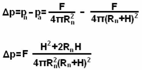 From the last formula it is visible, that at the decrease of Rn, the pressure acting on a layer with radius Rn increases, and Δp increases between layer «A» and layer «N».